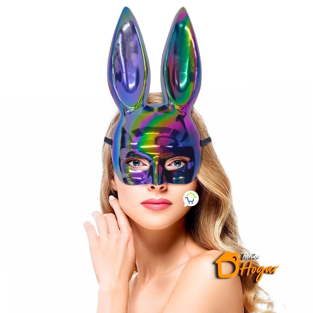 • 🐰 Máscara metálica de conejita con orejas altas y acabado brillante